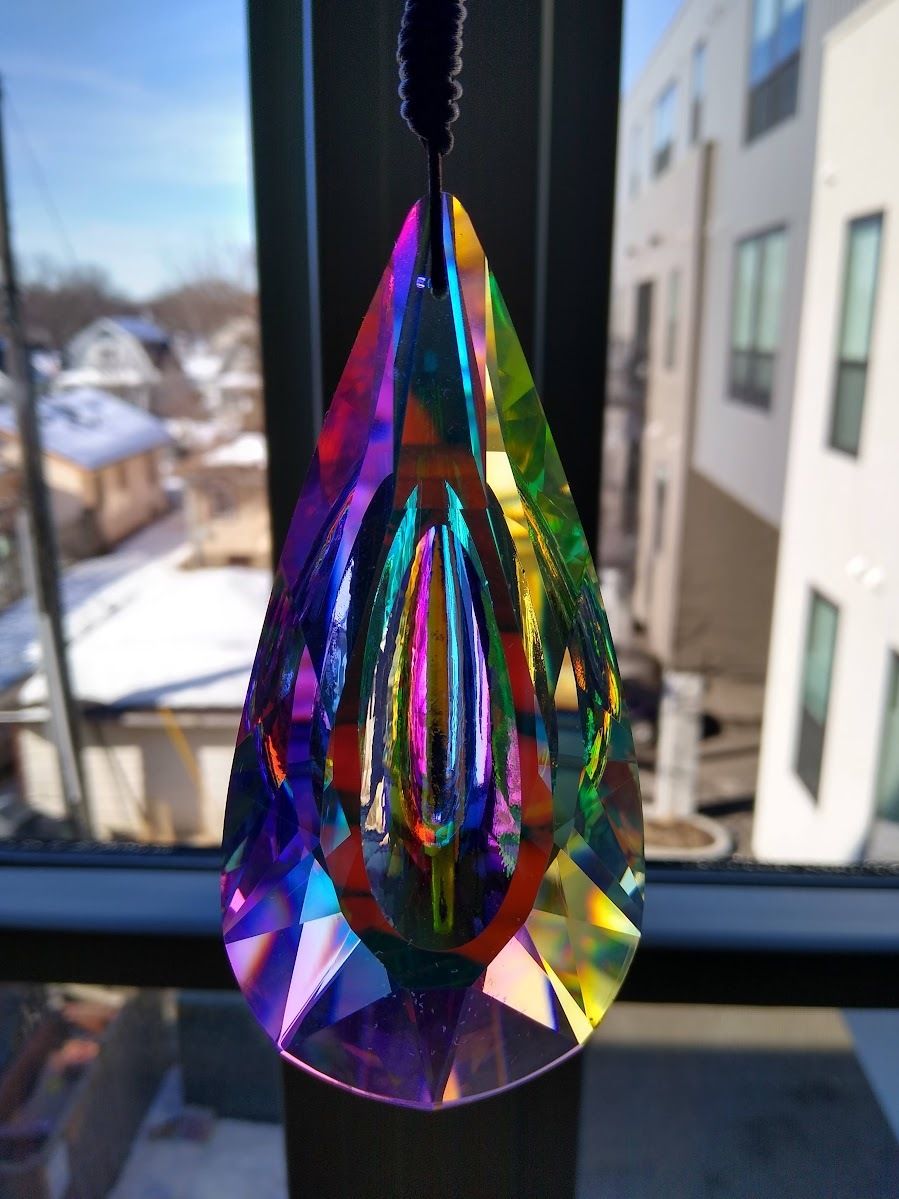When my partner and I got our own place, she gave us a gigantic teardrop-shaped crystal that casts rainbows all over whenever the sun is shining. She relished the ephemeral joy in seeing light refract through the prisms, calling it a form of daily magic. I know I certainly feel blessed by the essence of Gay when one of the rainbows that grace our space lands on me.