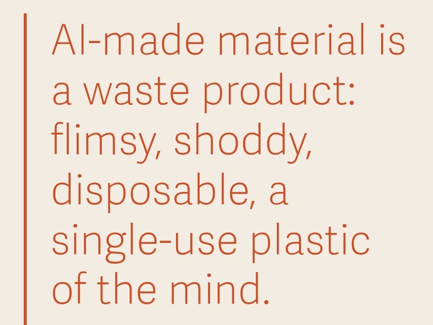 As was alluded to above and in the most recent Patreon update, this is quite a challenging time to be a writer, let alone a multiply marginalized one. The endless onslaught of AI slop threatening to take accessible gigs away from professional humans is simultaneously distressing and infuriating, and it’s hard to feel like I have any control at all over whether or not my words get hoovered up by the insatiable bubble tech I both despise and distrust. Nonetheless, I persist in my abstention and dissent, and I put my trust in people.
